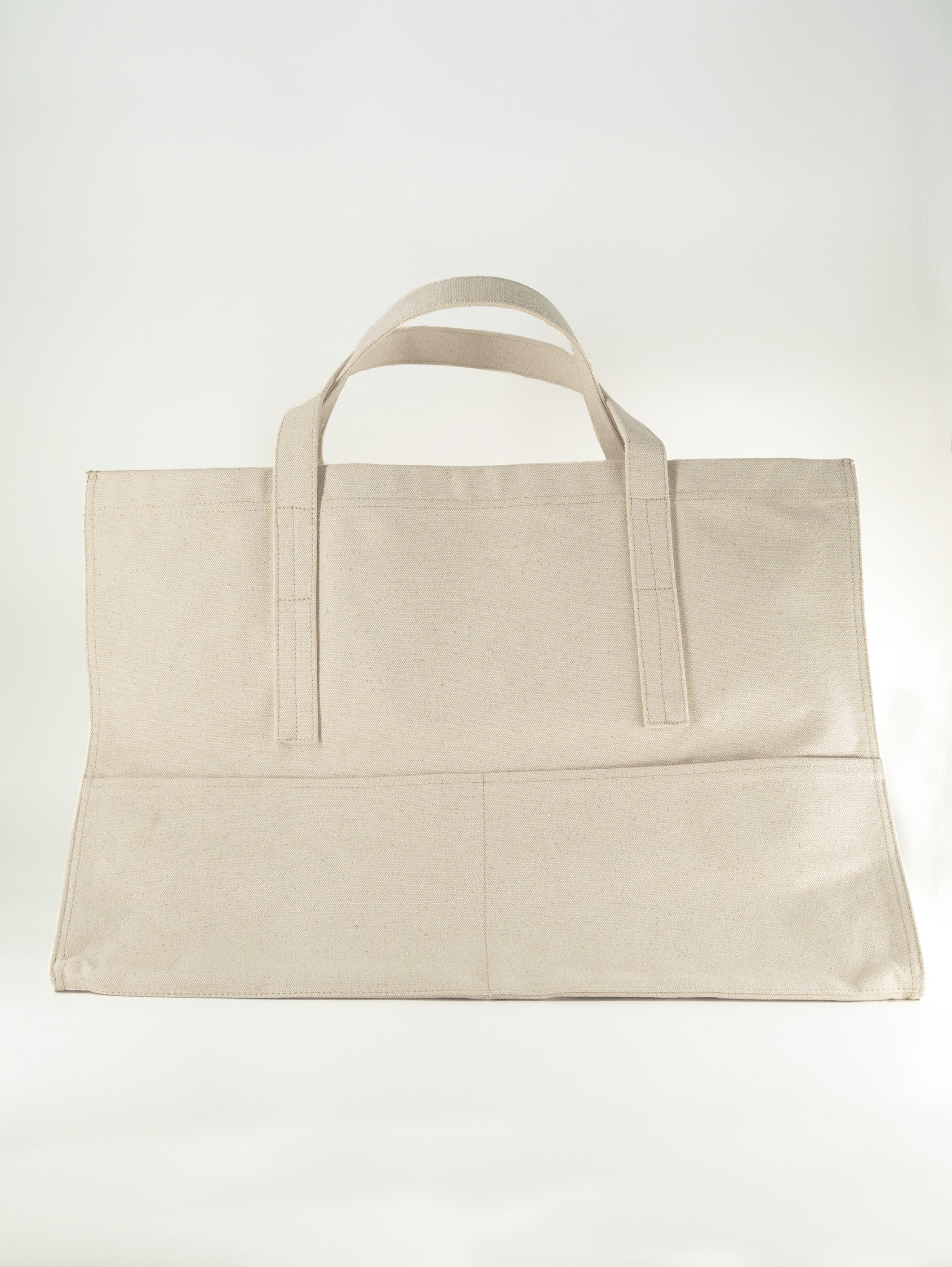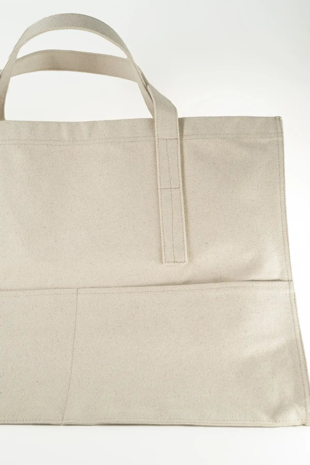 Saco em lona 100% algodão de alta resistência. A sua superfície é realçada por bordados subtis que conferem textura e distinção. A cor é Blanc de Blanc, um branco puro com acabamento natural.