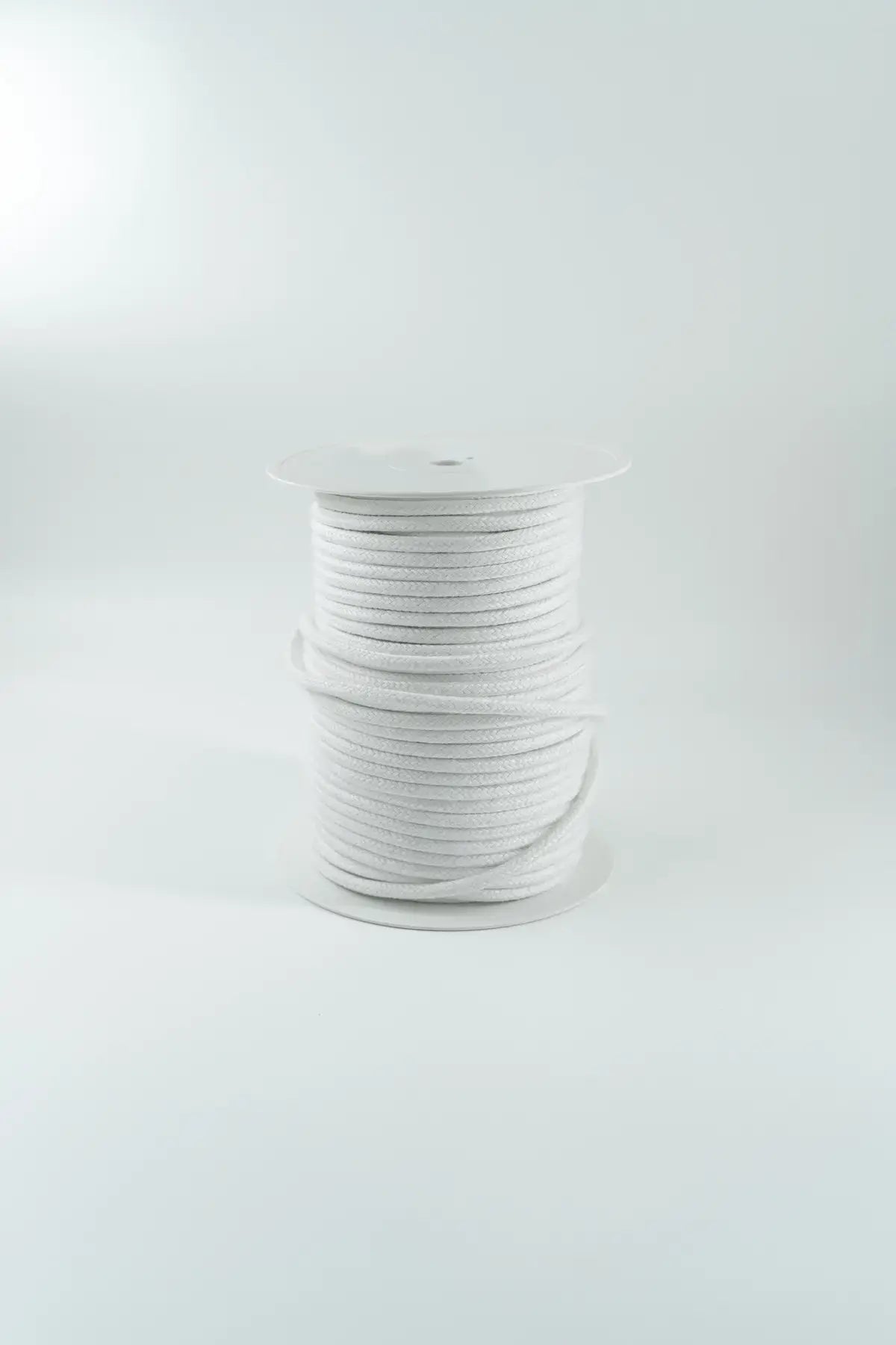 Cordão branco grosso, fabricado em 100% algodão de alta qualidade, com 5 mm de largura e aproximadamente 5 mm de diâmetro.