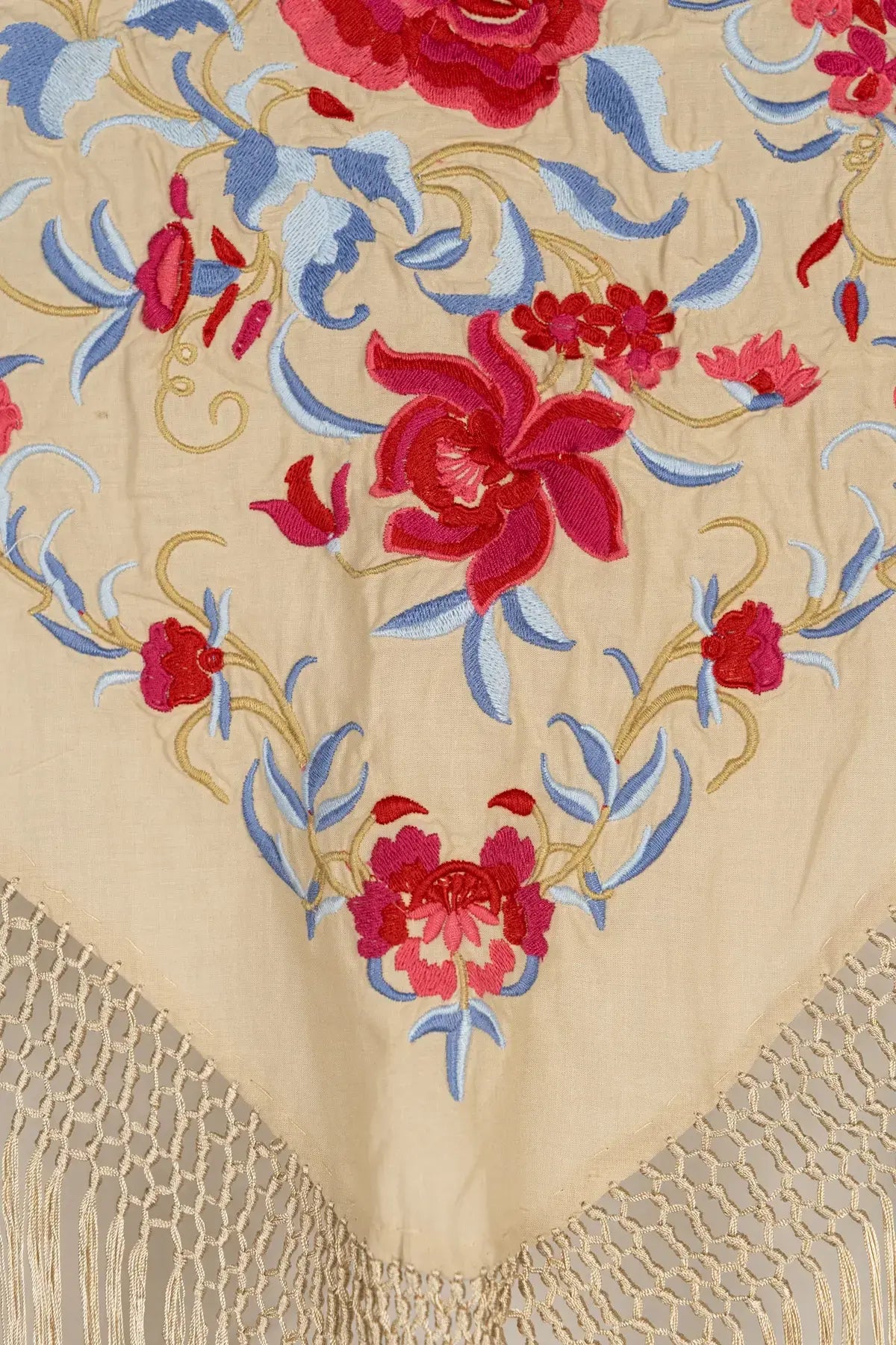Franjas cosidas à mão com fio de seda.