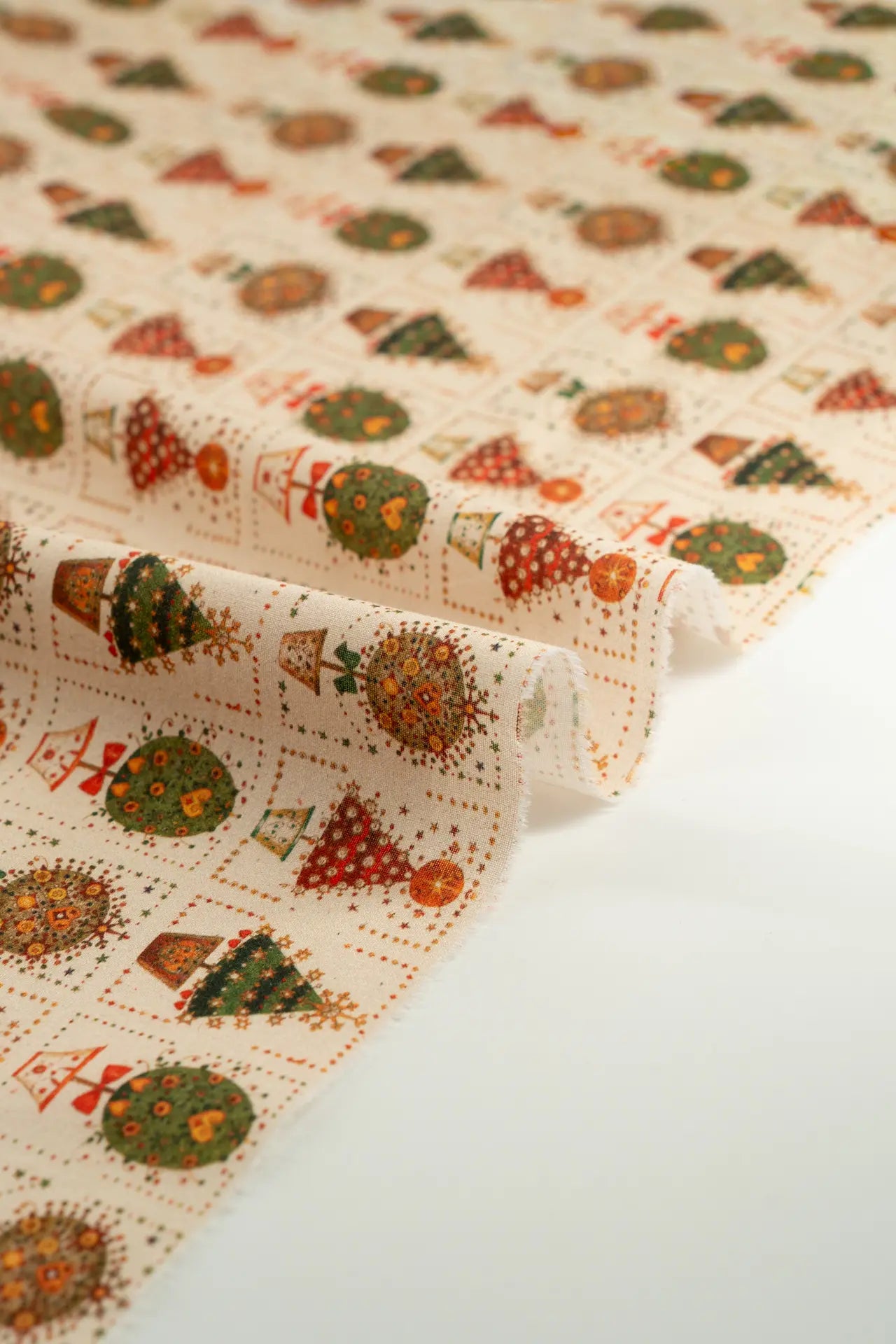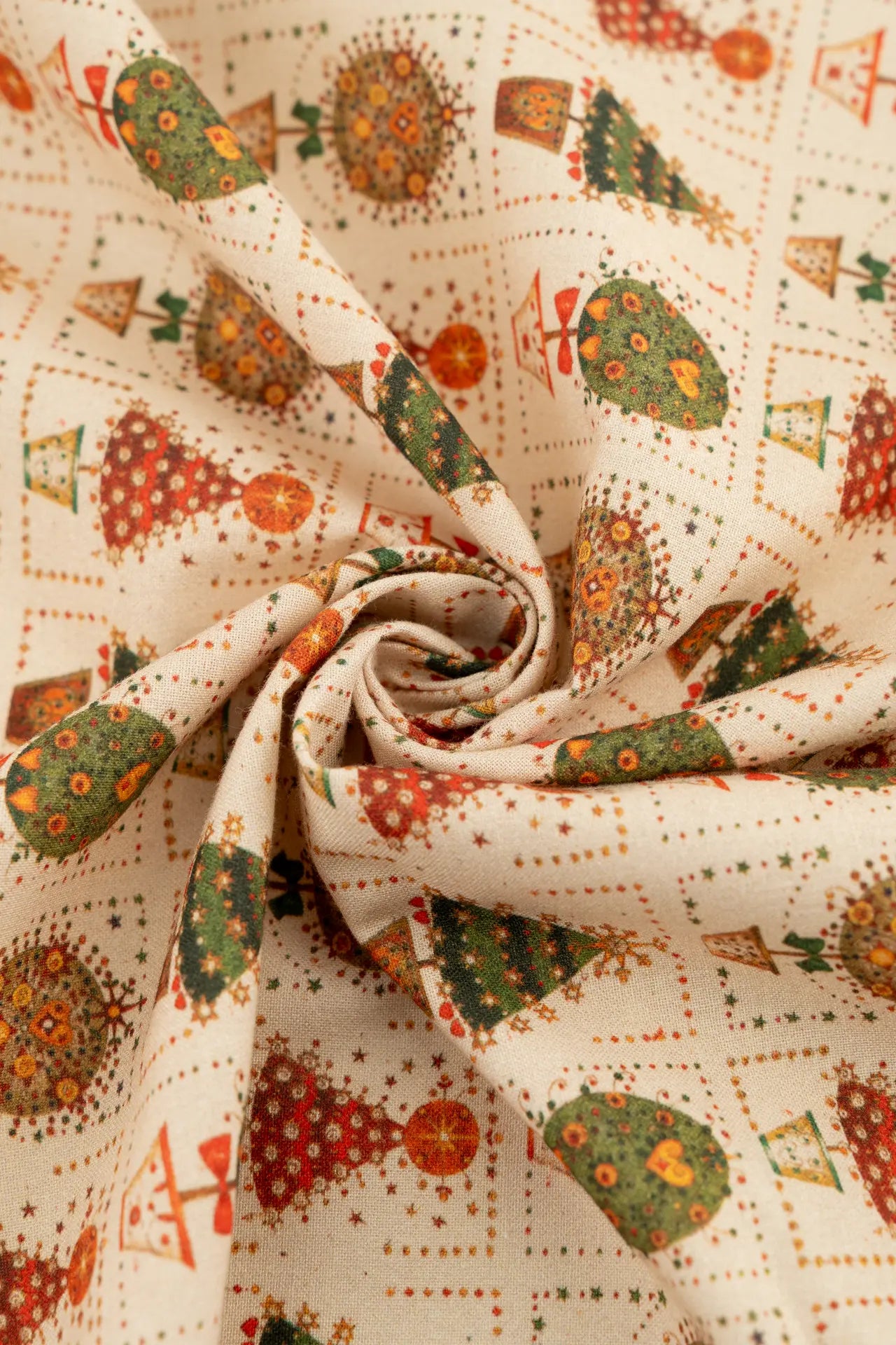 Árvores de Natal e vasos de flores