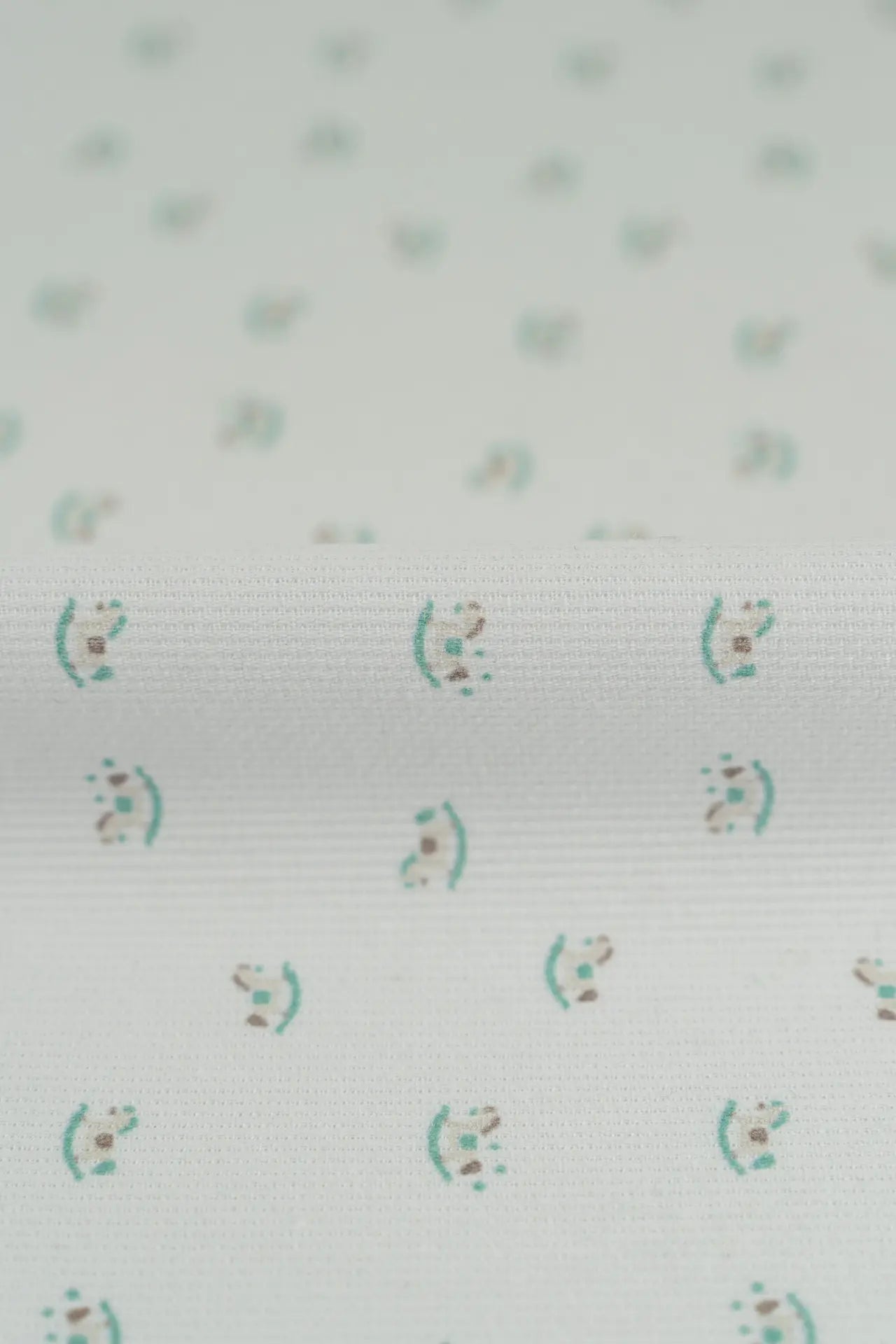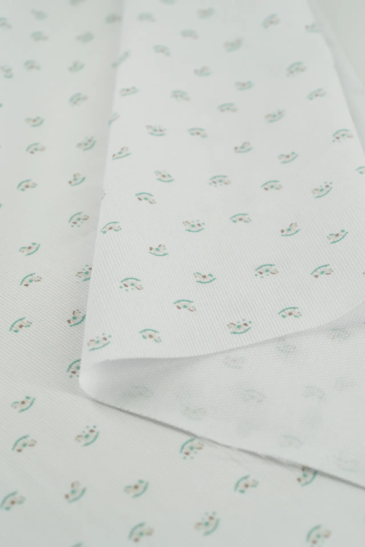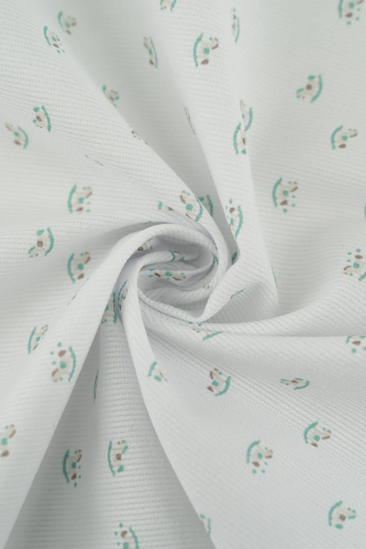Tecido piqué estampado em algodão e poliéster com motivos infantis.