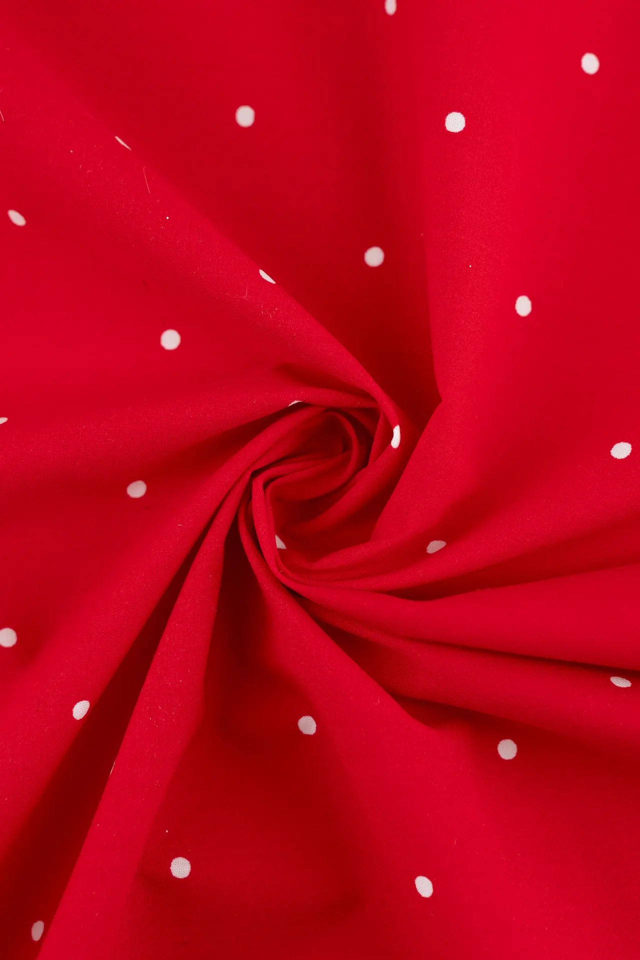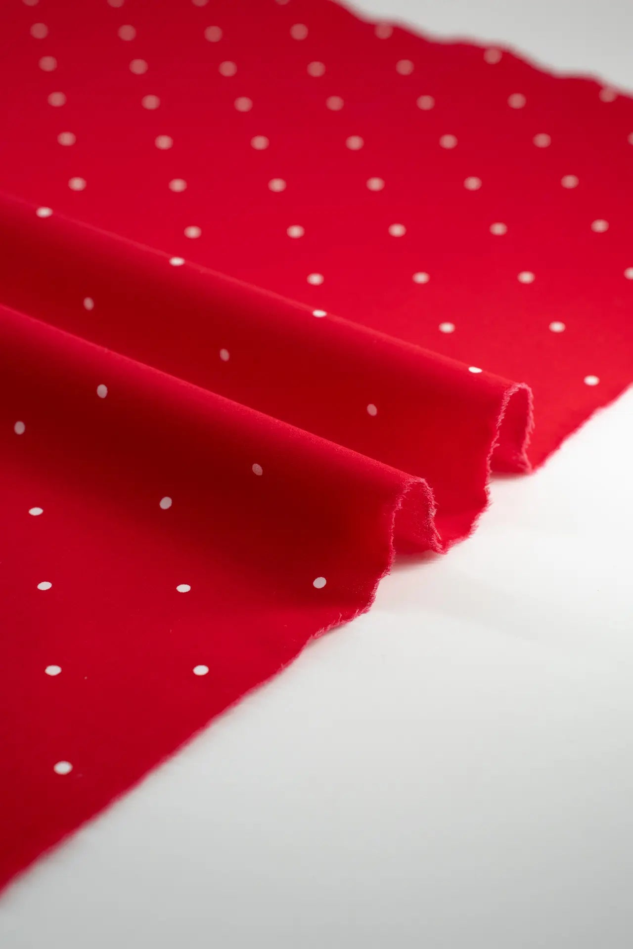 Tecido feito de poliéster reciclado e algodão orgânico com estampado de bolinhas.